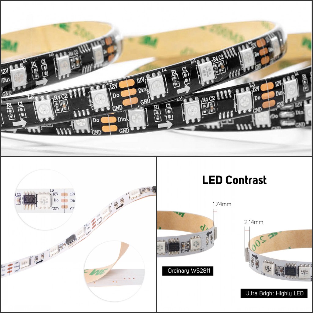 IC quantity: 20 pieces WS2811 IC per meter, total 100 ICs