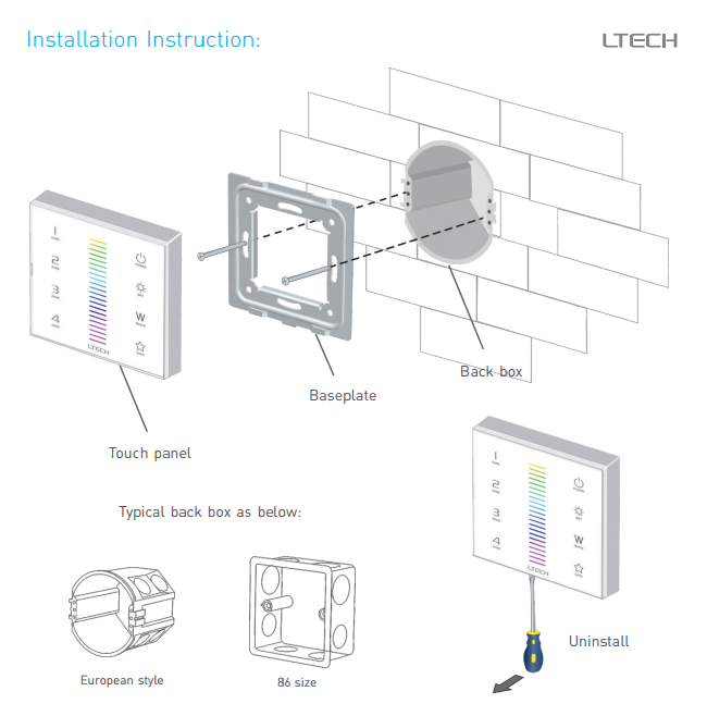 Ltech EX8 RGBW 4 Zones Touch Panel Led Wall Mounted Controller is durable and popular for LED Lighting decoration, For big order or customized items of LED Strip, LED Controller, LED Power Supply and Other LED items, Pls feel free to contact service@agodx.com