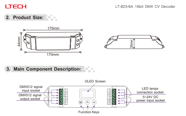 Ltech LT-823-6A 16bit DMX CV Decoder DC5-24V Input 6A 3CH Output is durable and popular for LED Lighting decoration, For big order or customized items of LED Strip, LED Controller, LED Power Supply and Other LED items, Pls feel free to contact service@agodx.com