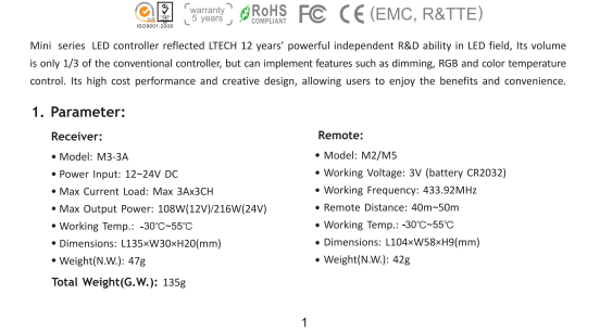 Ltech M2/M5 RF Remote + M3-3A Receiver DC 12-24V CCT Led Controller is durable and popular for LED Lighting decoration, For big order or customized items of LED Strip, LED Controller, LED Power Supply and Other LED items, Pls feel free to contact service@agodx.com