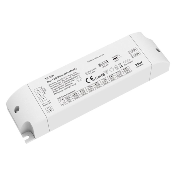 TE-25A Skydance Led Controller 25W 250-900mA Multi-Current SwitchDim Triac Dimmable Driver is durable and popular for LED Lighting decoration, For big order or customized items of LED Strip, LED Controller, LED Power Supply and Other LED items, Pls feel free to contact service@agodx.com