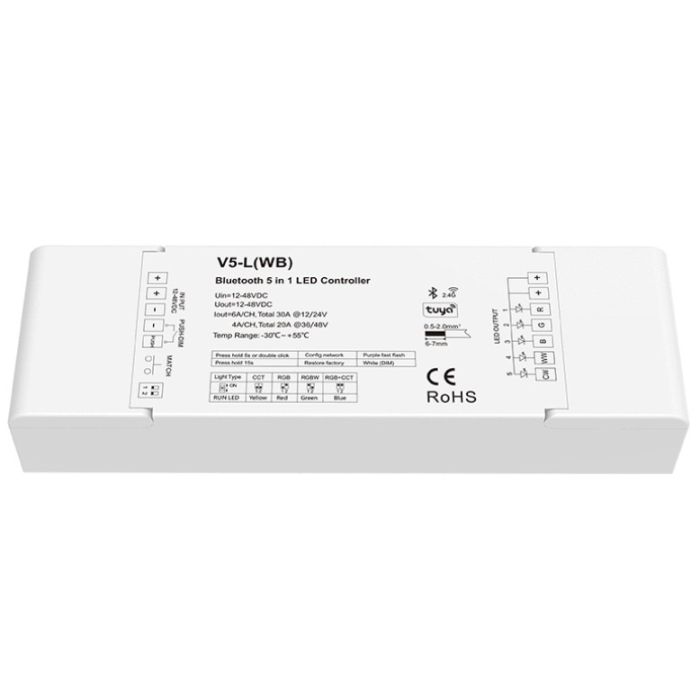 1 Piece of V5-L (WB) Skydance Tuya App 12-48V DC 5CH 6A Bluetooth RF 5 in 1 Led Controller